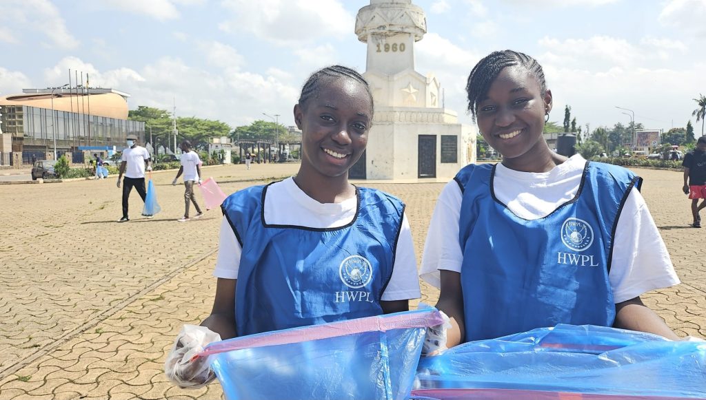 The main program, the Peace Walk, followed. Participants marched around Yaoundé City Hall (Hotel de Ville), spreading the message of peace through their steps. And, they carried out a street clean-up activity, putting the values of peace into practice through action during the peace walk.