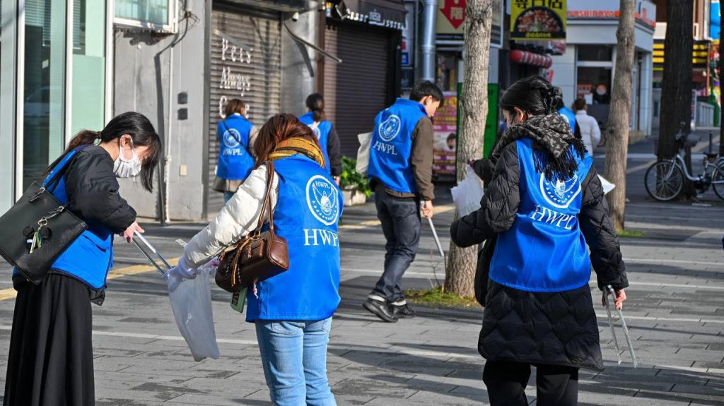 More than 150 volunteers gathered around Namba Station and Dotonbori—a renowned entertainment district in Osaka, Japan—on March 7 to participate in the 100th Environmental Cleanup Volunteer Activity organized by International Peace Youth Group (IPYG) and the Kobe Branch of Heavenly Culture, World Peace, Restoration of Light (HWPL).